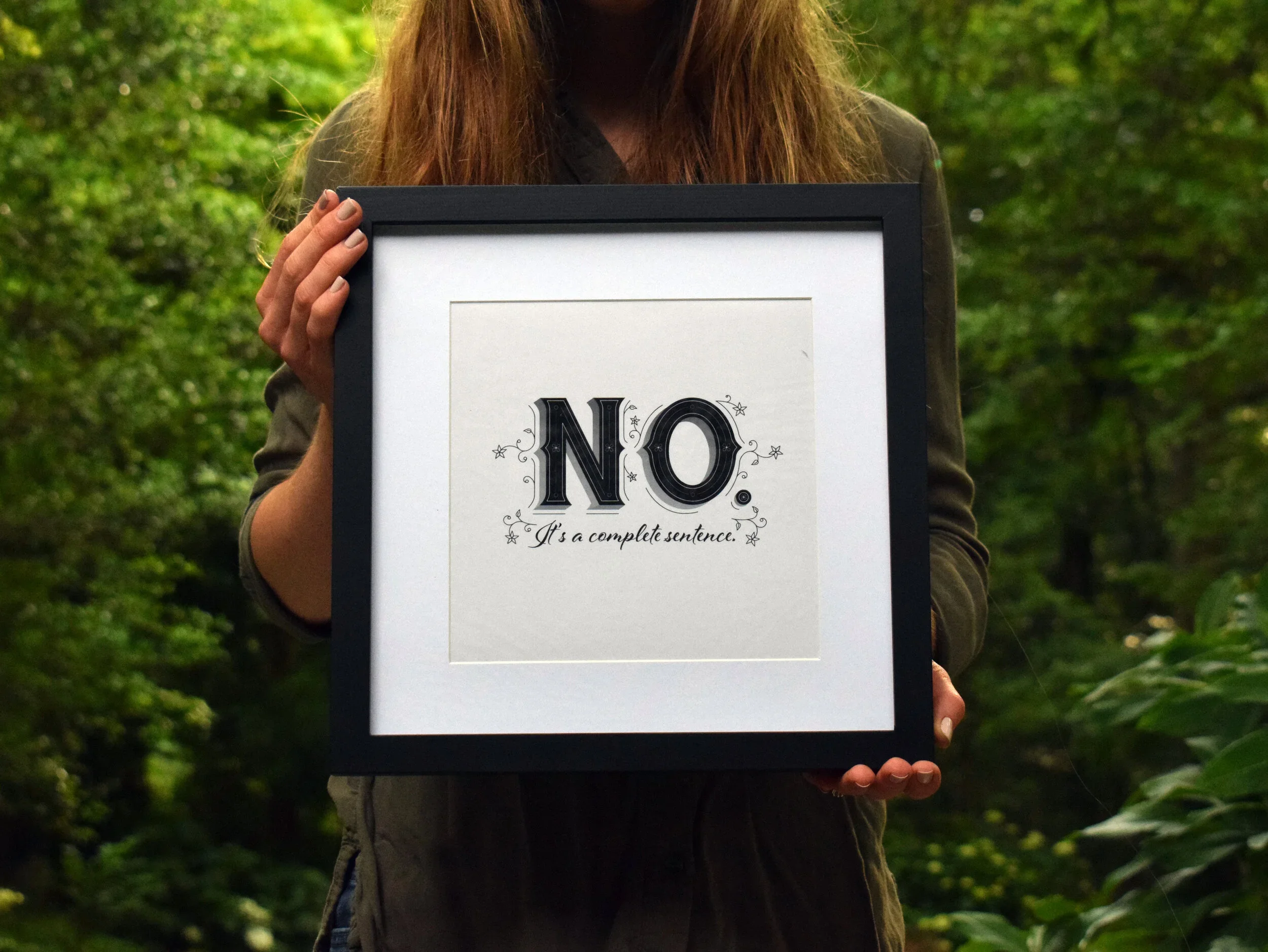 Inspired by meaningful conversations with friends and motivational podcasts, I designed three custom lettering pieces in Adobe Illustrator as visual reminders of the power of saying “no.” The project was both creative and personal—transforming a challenge into artwork that inspires confidence and clarity.